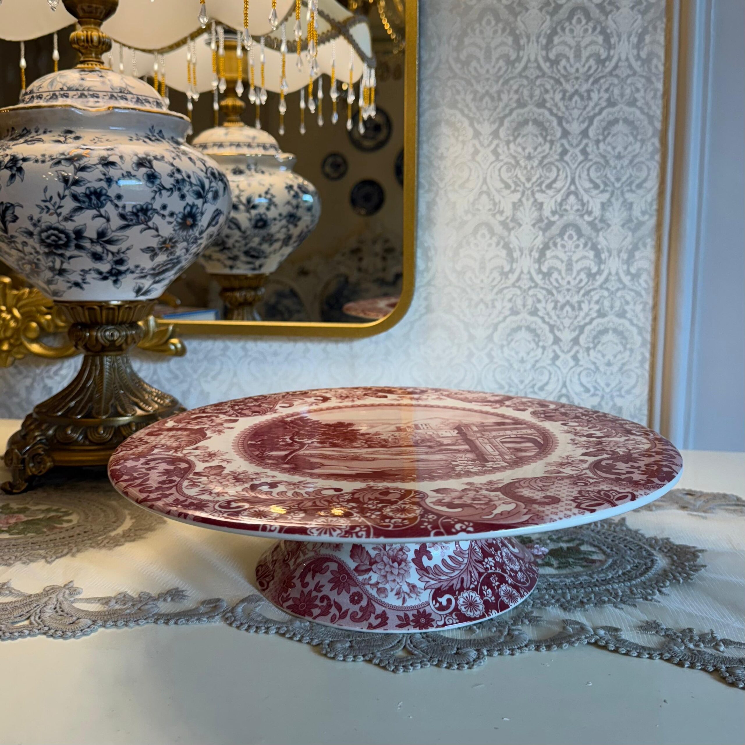 DESCRIPTION: A beautiful blend of charm and utility, the Adams Rose Cake Stand features fine ceramic craftsmanship and a graceful scenic design. Its classic silhouette makes it ideal for tea-time displays, celebrations, or simply enhancing your tablescape.