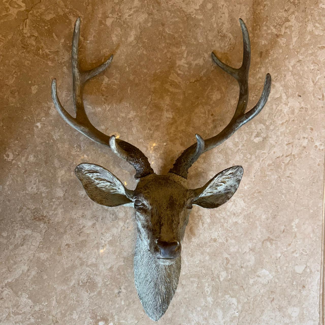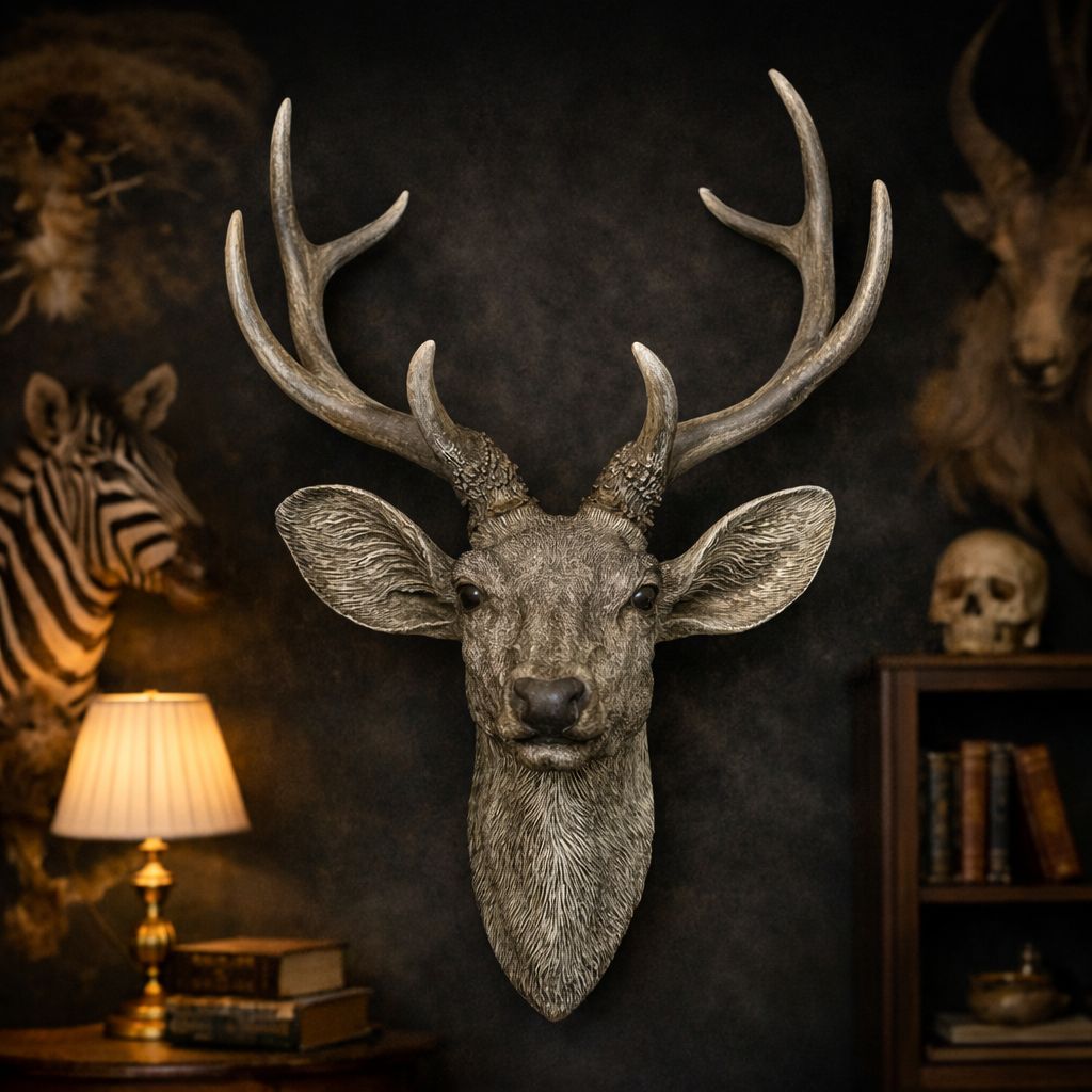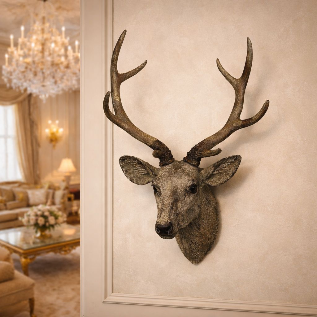 DESCRIPTION: Bring the quiet strength of the forest into your interiors with the Alderwood Stag Head, a beautifully sculpted wall décor piece inspired by the majesty of woodland wildlife. Expertly crafted from high-quality resin, this realistic stag head features finely detailed antlers and natural textures that capture the noble presence of the forest stag. Finished in a natural grey tone, the piece reflects an authentic, earthy character that blends effortlessly with rustic lodge, modern farmhouse, and nature-inspired interiors. Its strong silhouette creates a striking focal point for living rooms, study areas, entryways, or themed décor spaces. The stag is widely admired as a symbol of strength, dignity, and leadership, making this piece not only visually impressive but also meaningful.