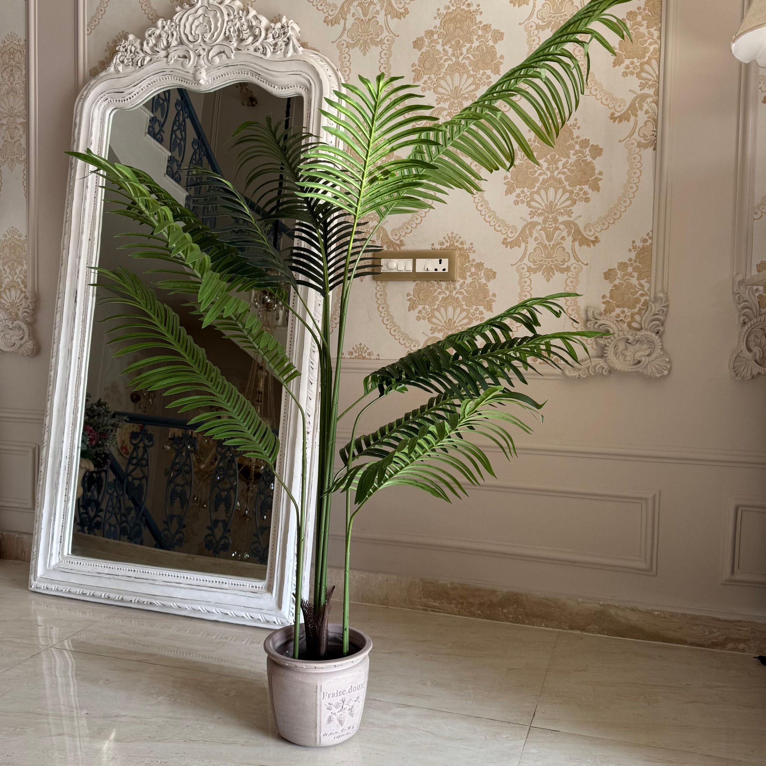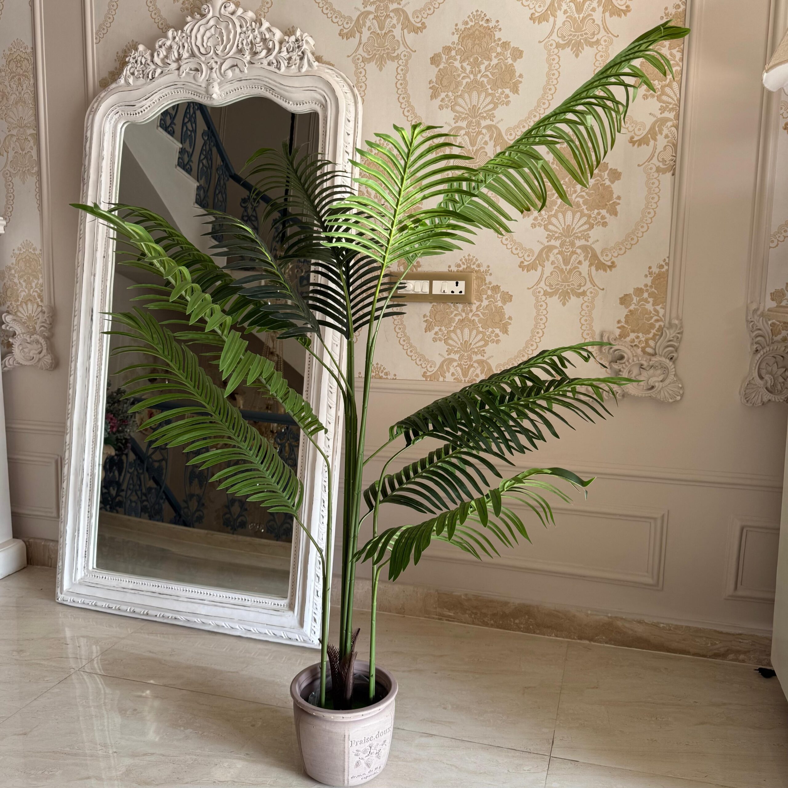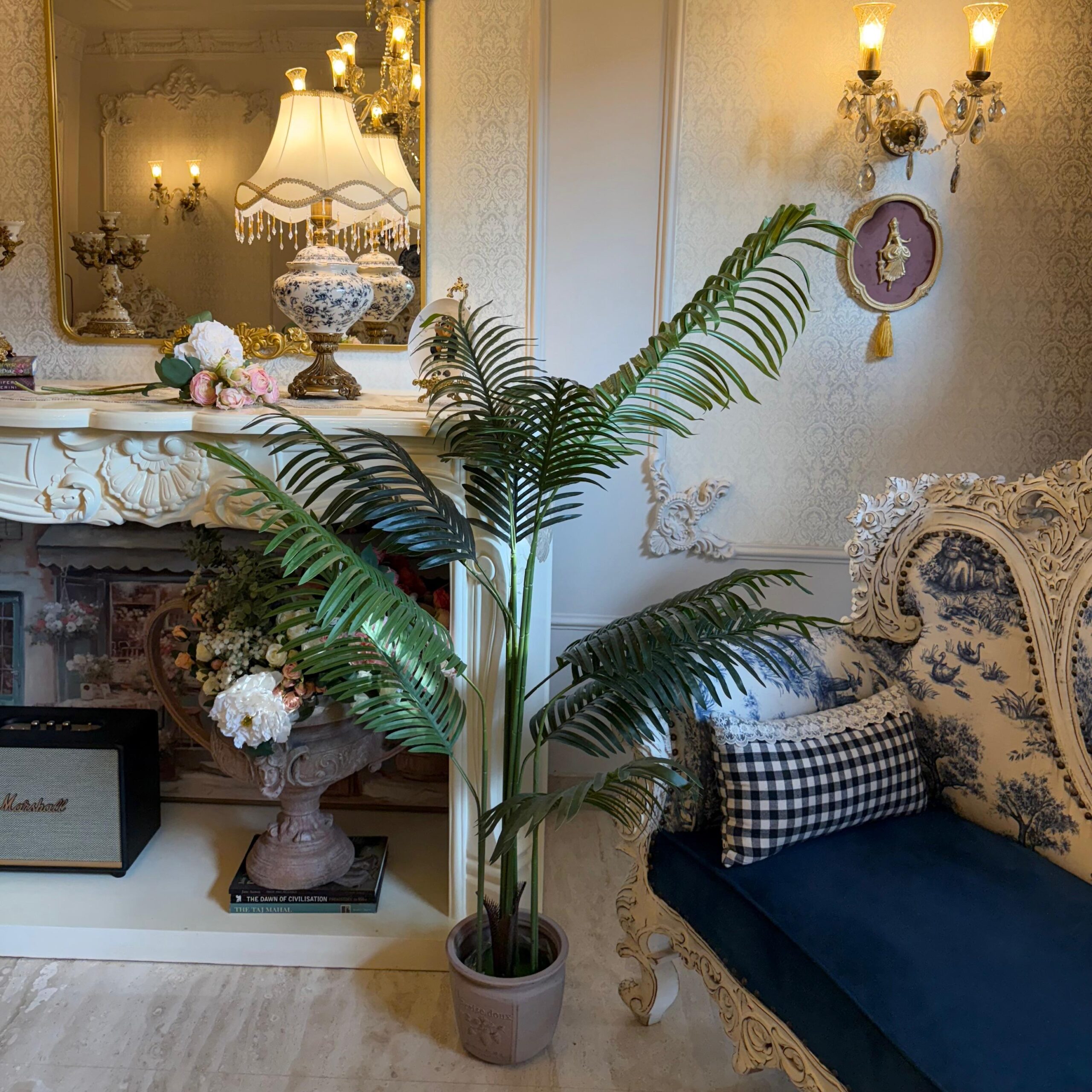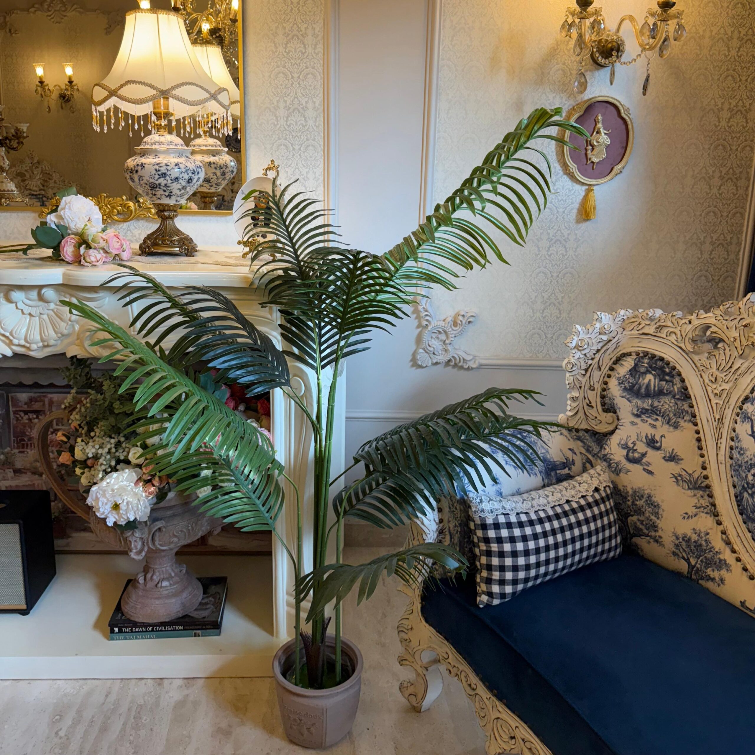 DESCRIPTION: This large artificial palm tree features rich, realistic foliage that brings a refreshing burst of greenery to your home. A top décor pick for instantly elevating your space and adding a natural, lively charm, without maintenance. Bring your space to life with this nearly-natural tall palm. Its lush leaves and grand height make it a stunning accent for living rooms, entryways, or offices, adding effortless elegance and tropical vibrance.