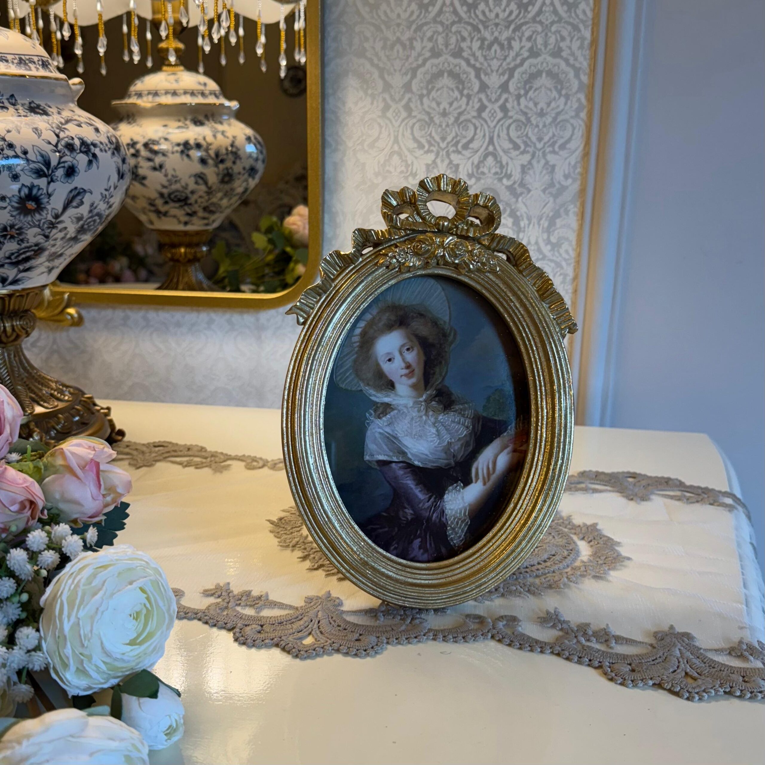 DESCRIPTION: The Fleur de Ribbon Frame pairs floral motifs with a graceful bow carving, offering a romantic, ornate look. This frame is ideal for those who appreciate artistic craftsmanship and a soft, decorative touch.