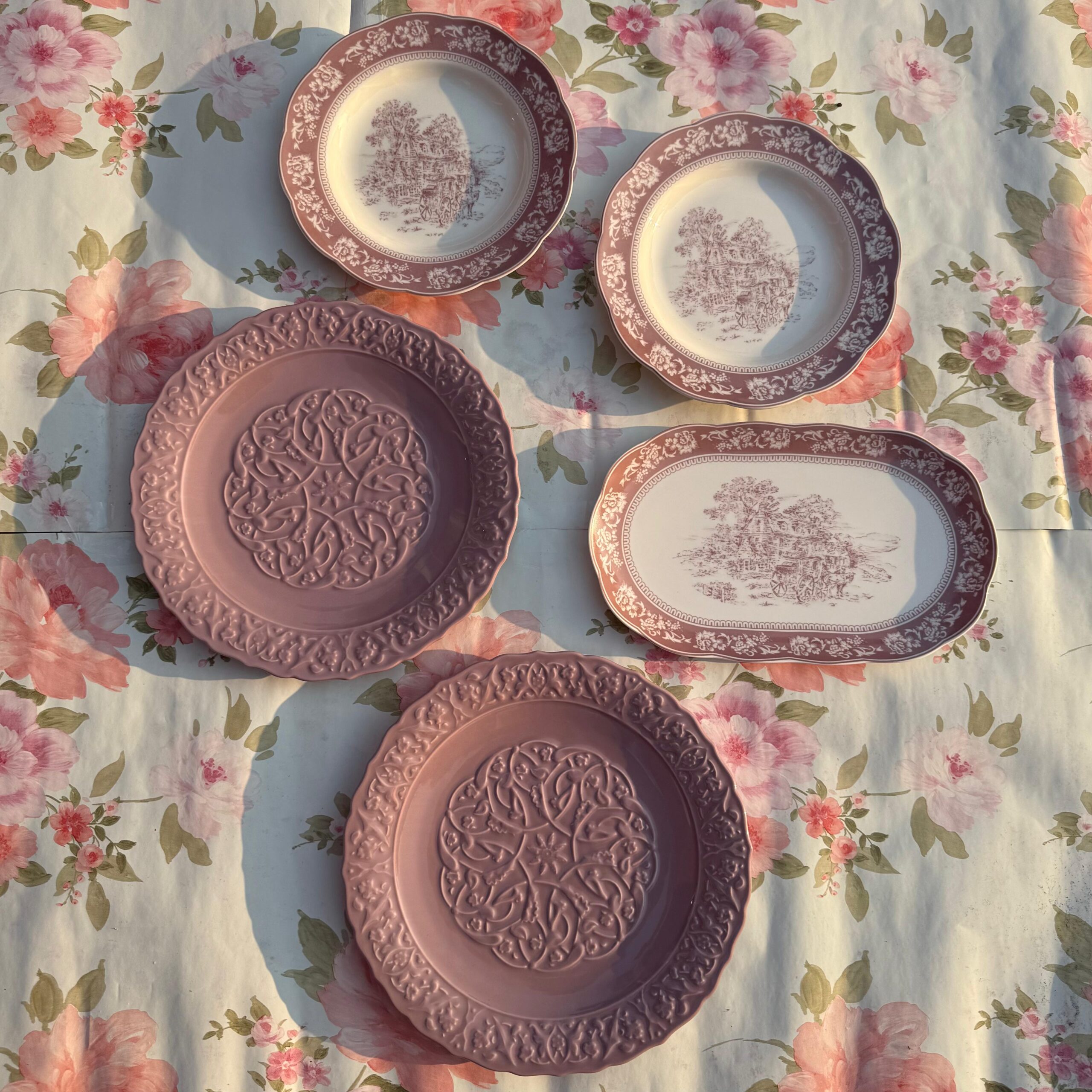 • 2 Pink Embossed Big Plates – soft pastel tones with elegant raised detailing