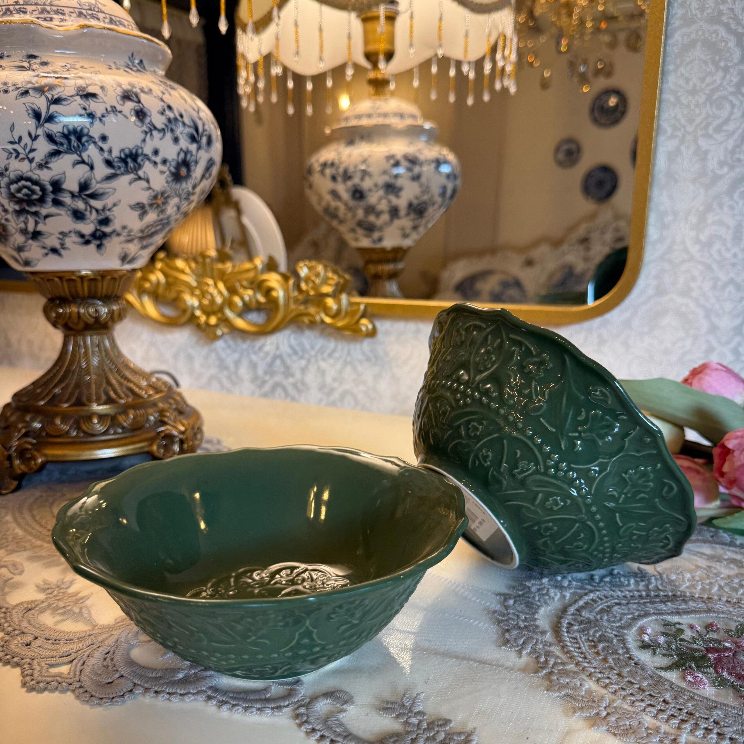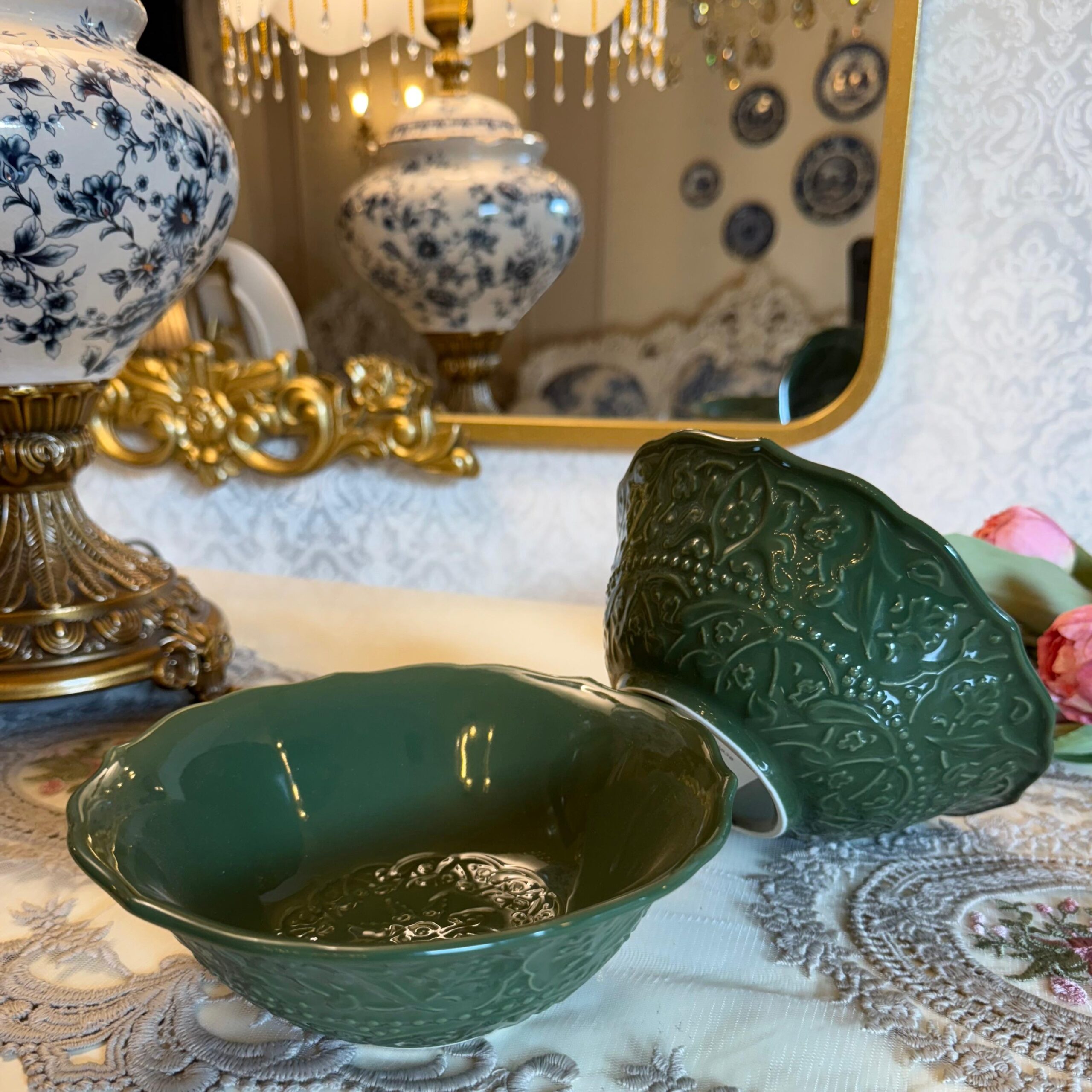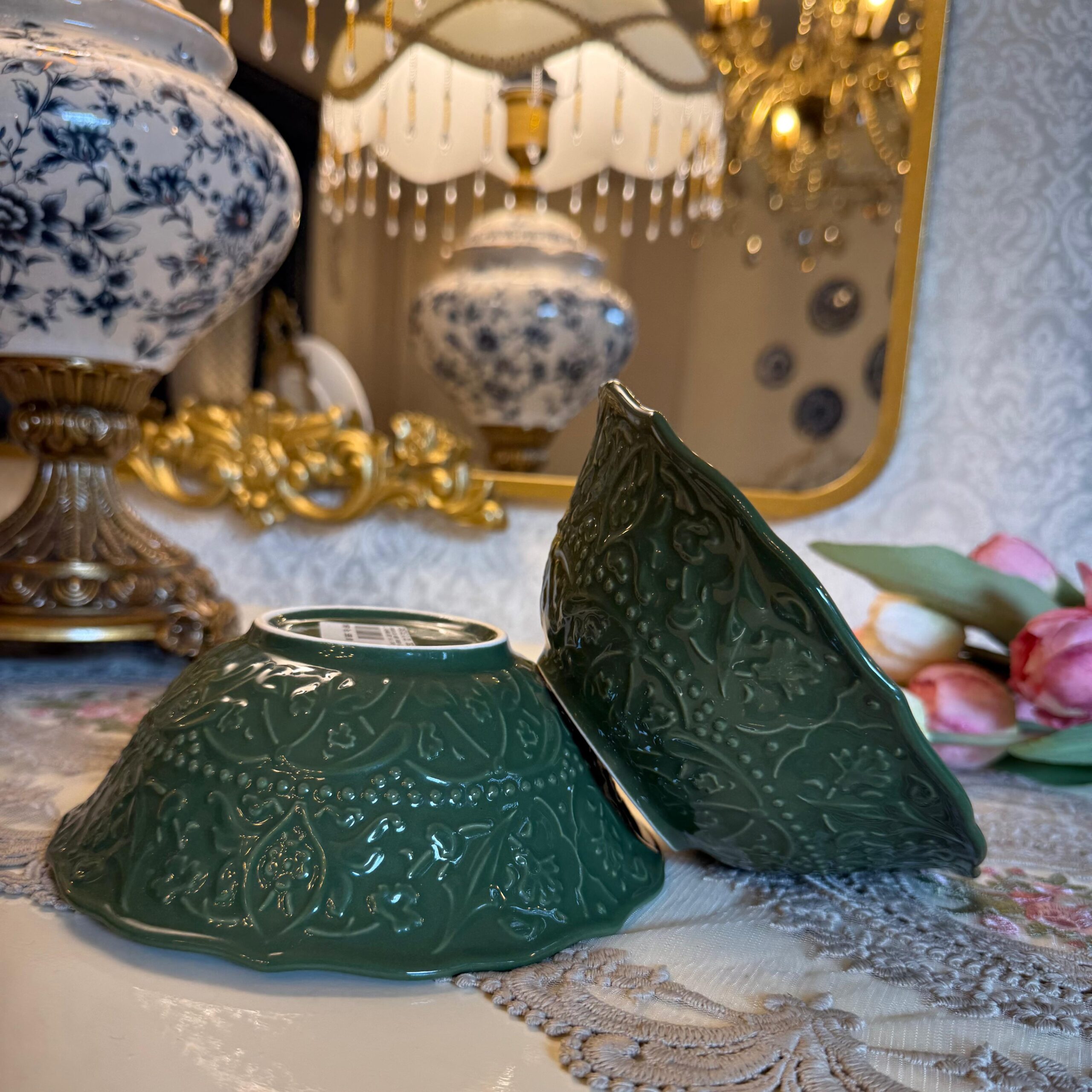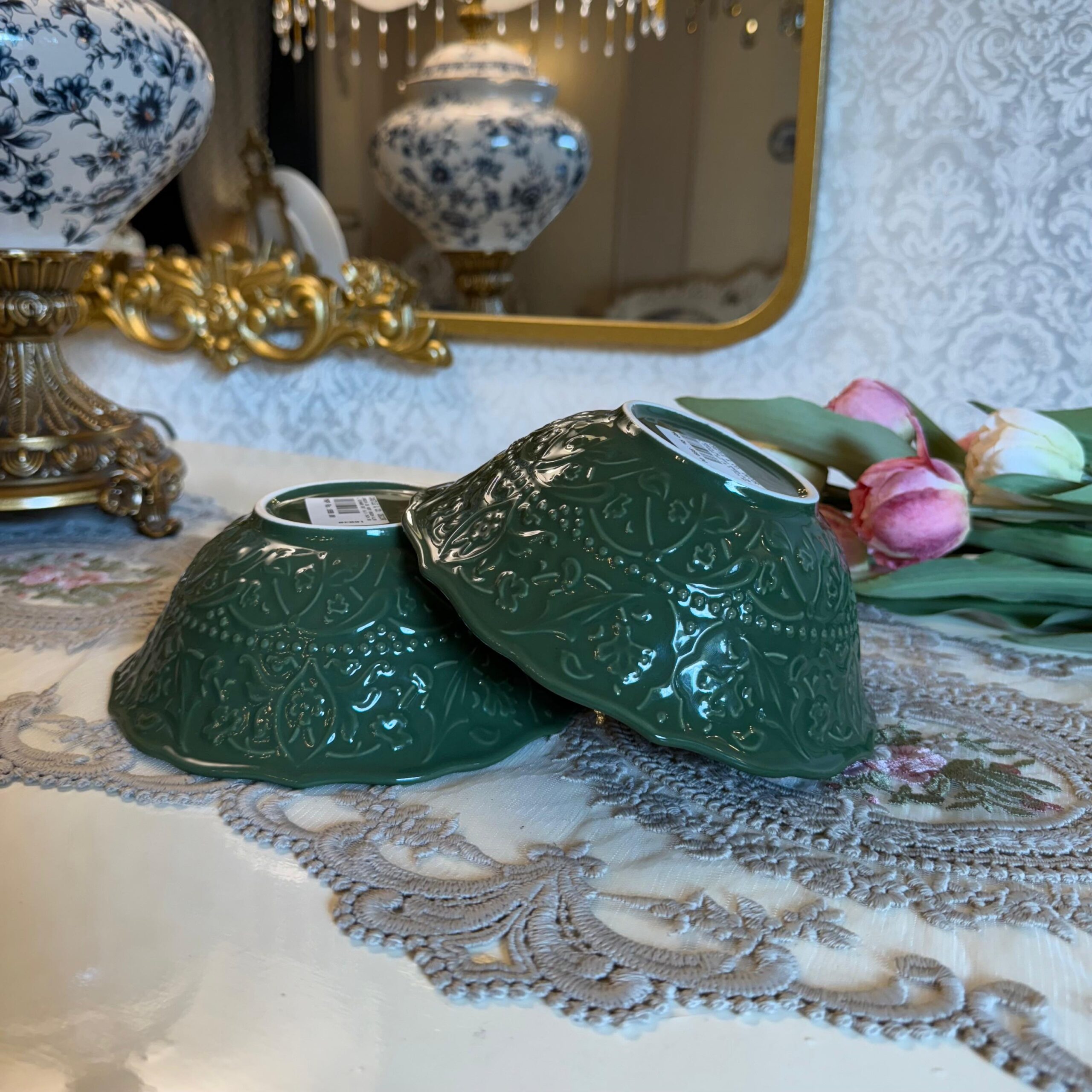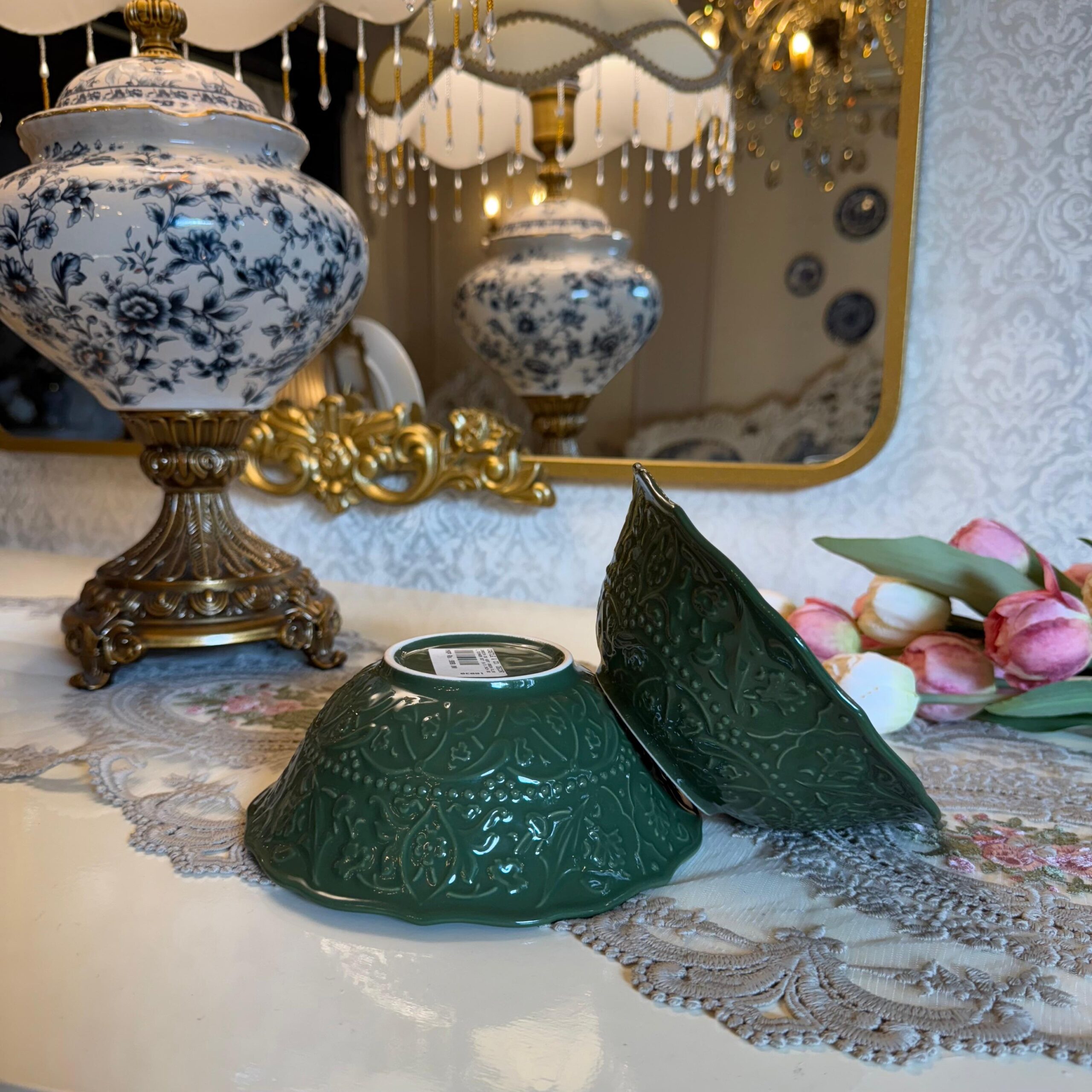 DESCRIPTION: Introducing our exquisite “Jardin de Vert Green Floral Dinner Set,” meticulously crafted from high-grade ceramic in the elegant French style. This dinner set combines the freshness of green hues with intricate floral embossed designs, creating a captivating ensemble that brings the beauty of a garden to your dining experience. Each piece in the set features delicate floral motifs, meticulously embossed onto the ceramic surface, showcasing the artistry of French craftsmanship. Whether you’re hosting a formal dinner or enjoying a casual family gathering, this set adds a touch of sophistication to any occasion. Immerse yourself in the lushness of a blooming garden and savor moments of joy and togetherness with this exceptional dinner set.