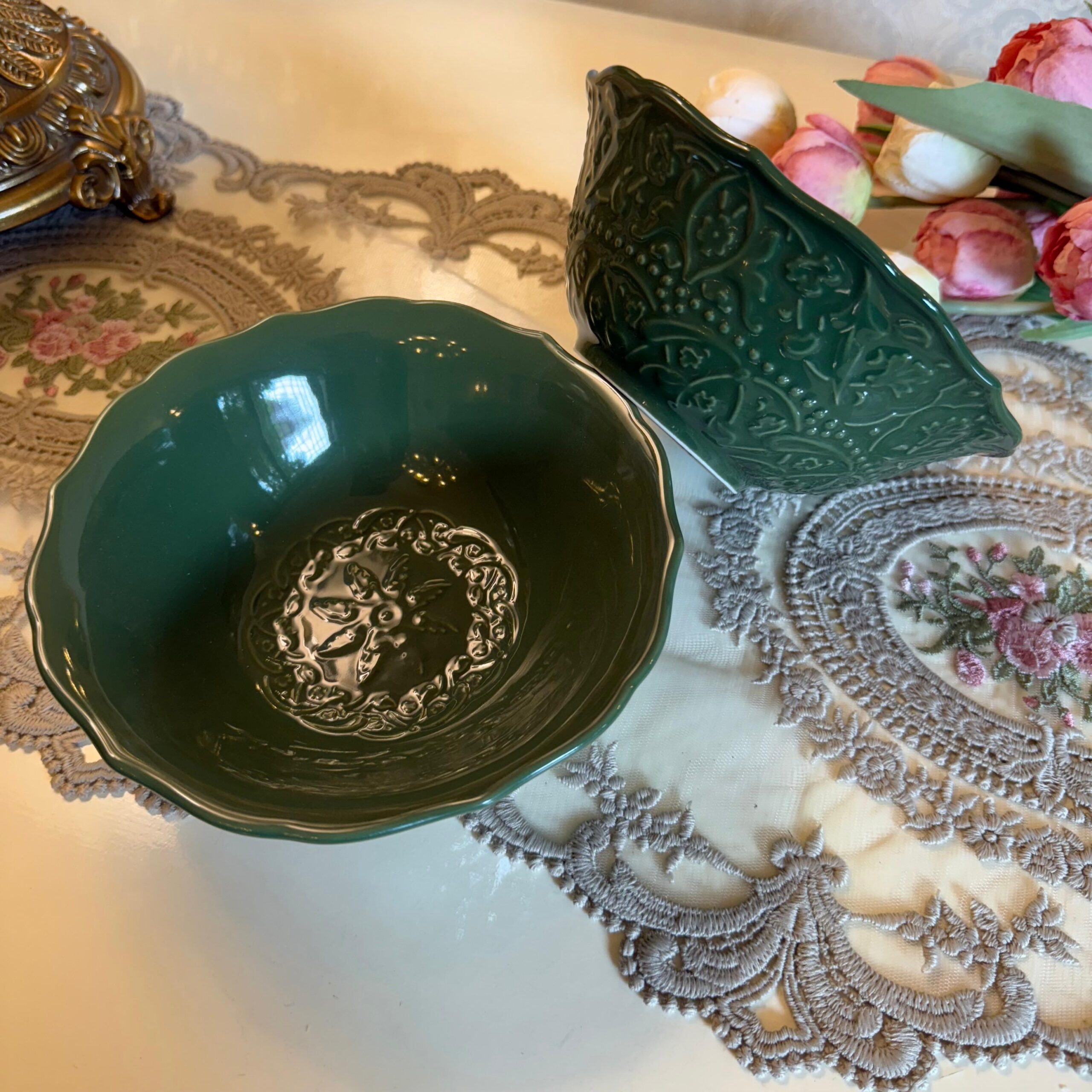 PACKED COMPONENTS: “Jardin de Vert Green Floral, 4.8″bowl set of 2pcs