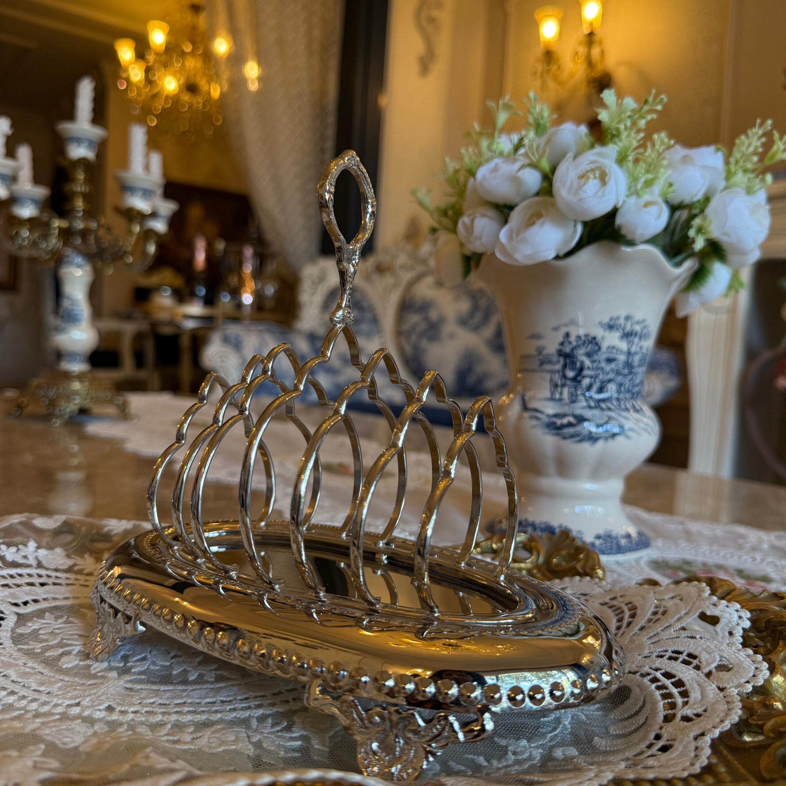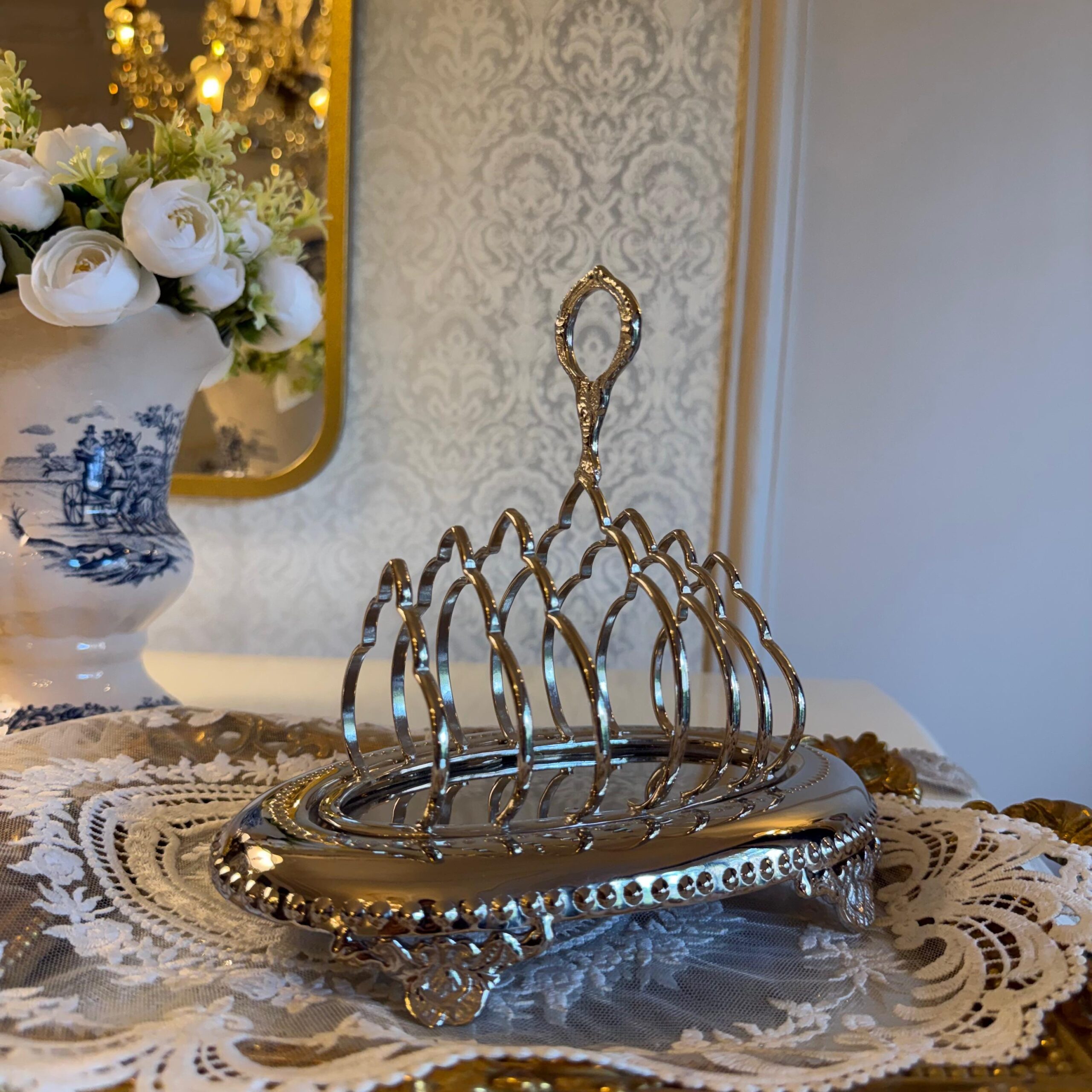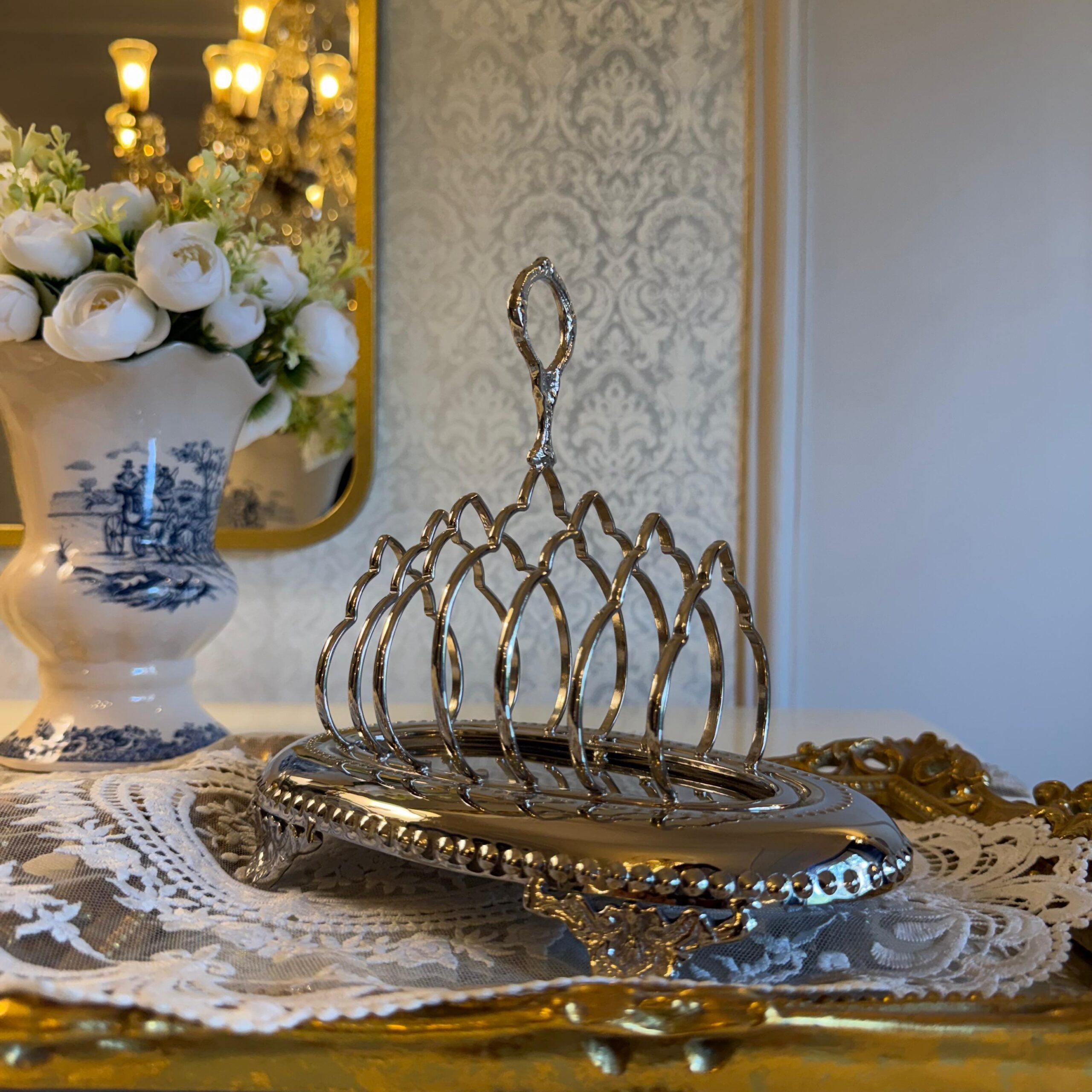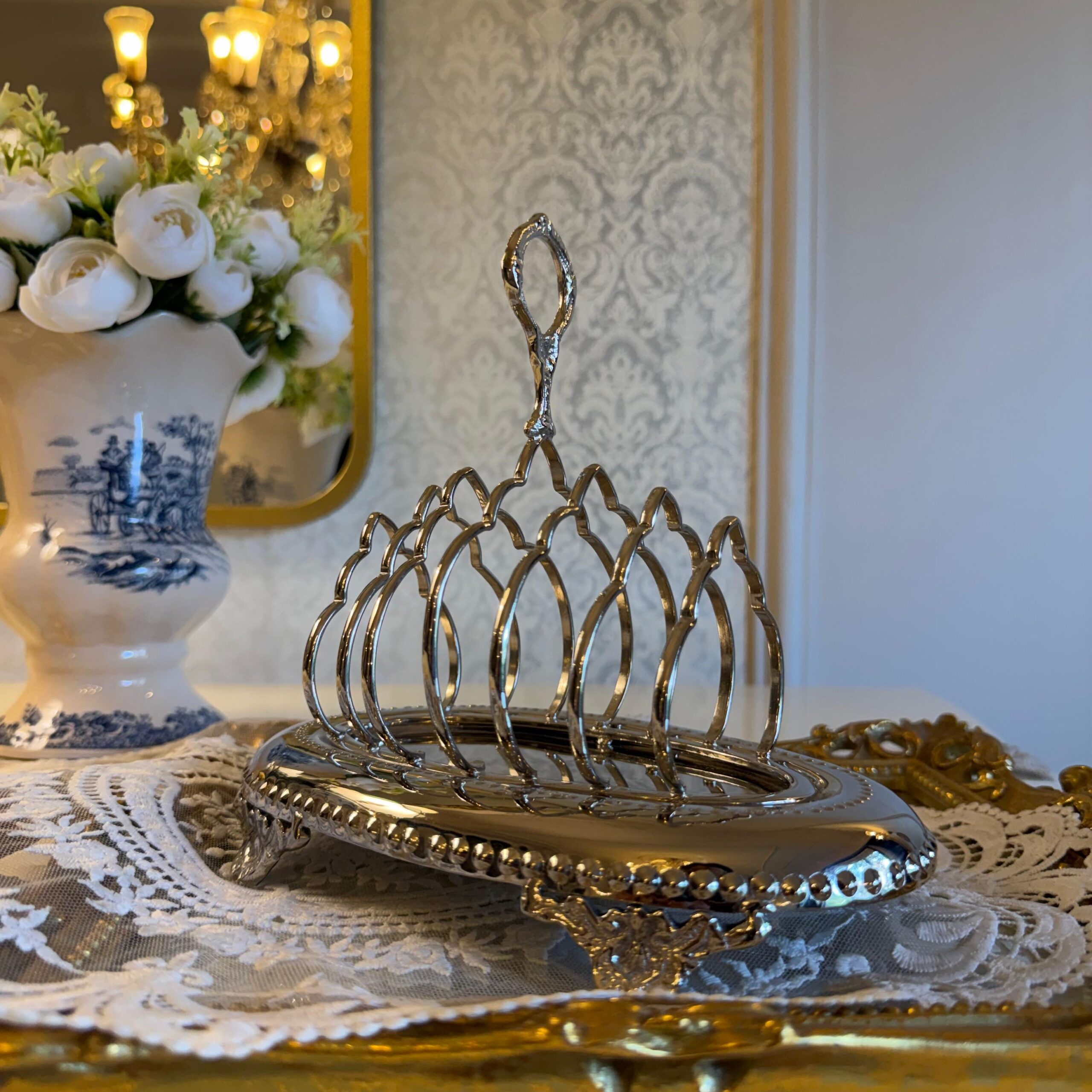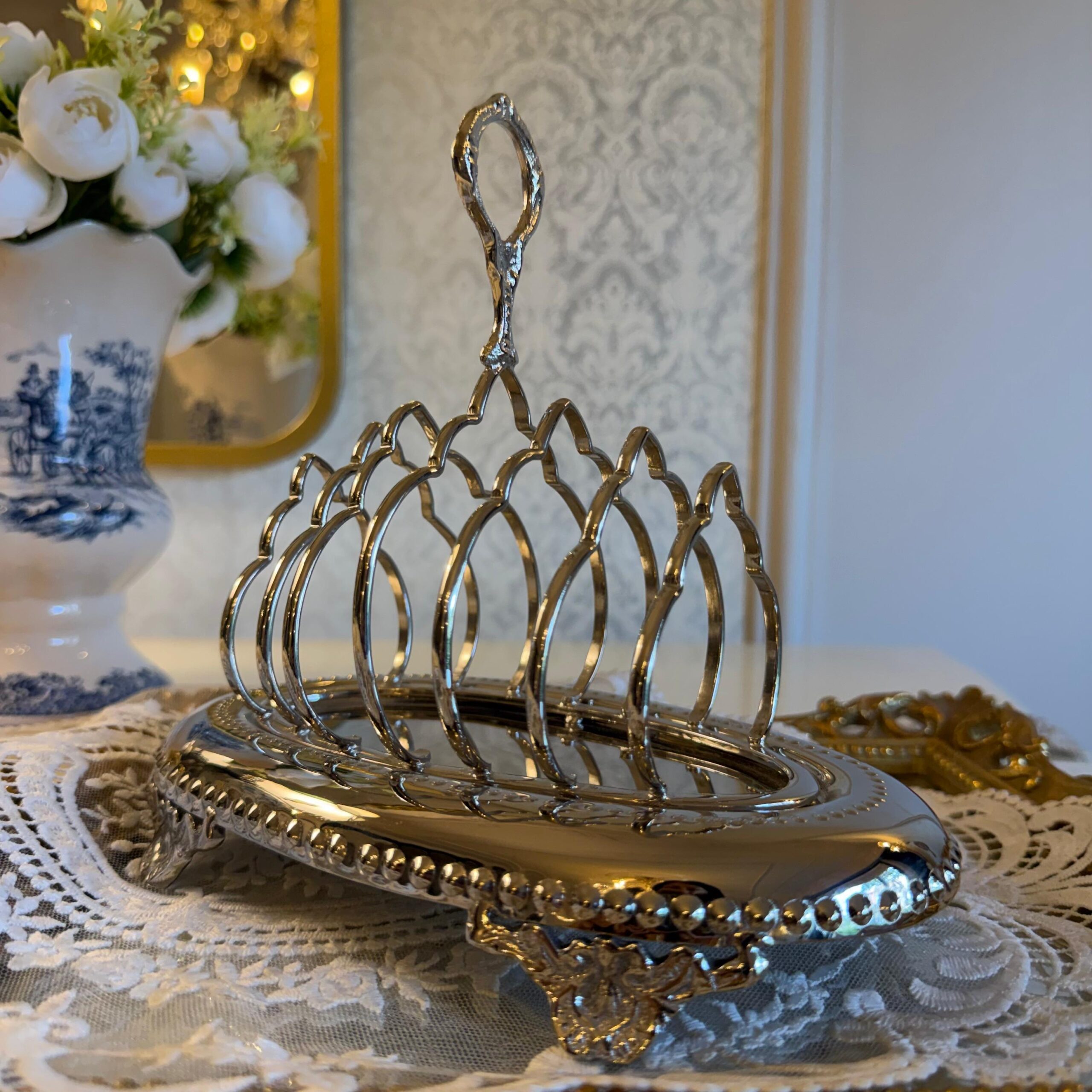 DESCRIPTION: The toast rack made of brass with a nickel finish is not only beautiful and functional but also enhances the aesthetics of your breakfast table. The toast rack’s stunning design and luxurious finish elevate the aesthetics of your breakfast setting. Its presence adds a sense of refinement and elegance to your table, enhancing the overall visual appeal. Whether you’re serving a casual morning meal or hosting a formal brunch, the brass toast rack with a nickel finish creates a stylish and inviting atmosphere.